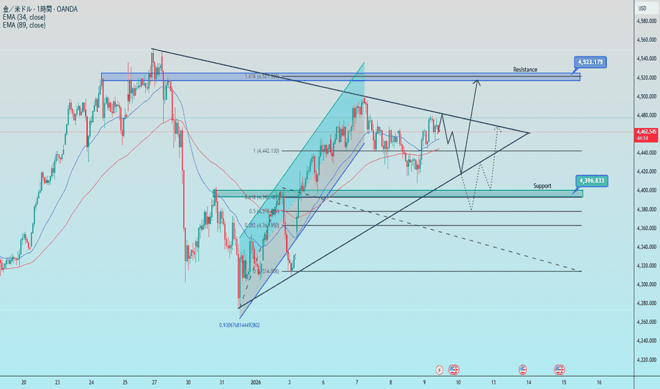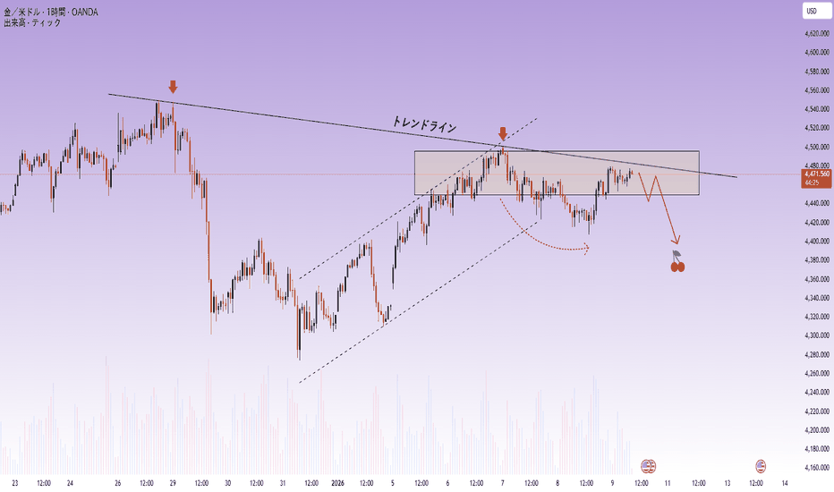 2026年1月8日(木)19時以降のXAUUSD(ゴールド)(修正及び更新)短期的には4,415を死守できるか「短期的には4,415を死守できるかの攻防、中期的には商品指数のリバランスに伴う機械的な売り圧力への警戒」