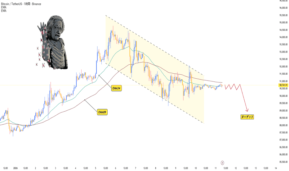ビットコインの弱気バイアス維持H1の時間枠における価格構造は、ビットコインが前回の上昇局面を終えた後も、依然として弱気チャネル内で推移していることを示しています。最近の上昇は弱く、EMA34とEMA89の領域で一貫して拒否されており、これは活発な売り圧力の明確な兆候です。