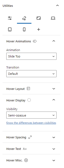 Mr.Dev.’s Framework allows to create custom utilities to select on the block editor.