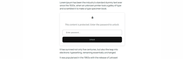 Unlike the built-in post password protection, this plugin protects only what you wrap, not the whole post.