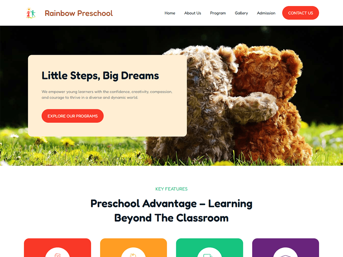 Rainbow Preschool is a versatile and multipurpose WordPress theme that has been developed with scholastics at heart. With a playful vibe and a focus on bright and bubbly colour design it is highly suited to early learning websites, including Kindergarten, Preschool and Junior through to Primary school learning centres.