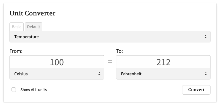This plugin was inspired by Google’s Unit Converter and includes the majority of