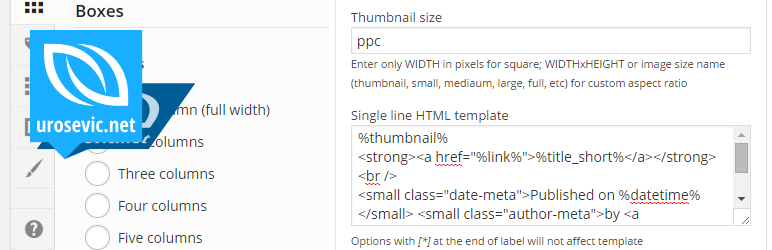 - choose how many boxes per row will be displayed (one, two, three, four or five)