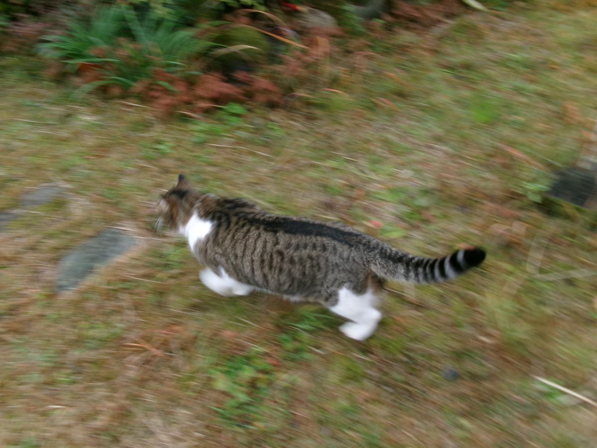 よれよれと動き出すおとな猫と宿禰じいちゃん。