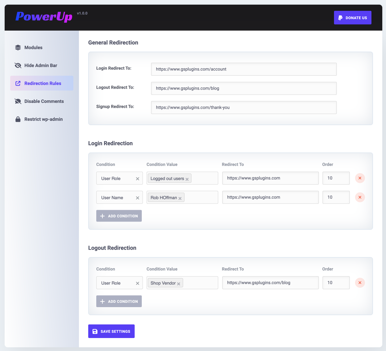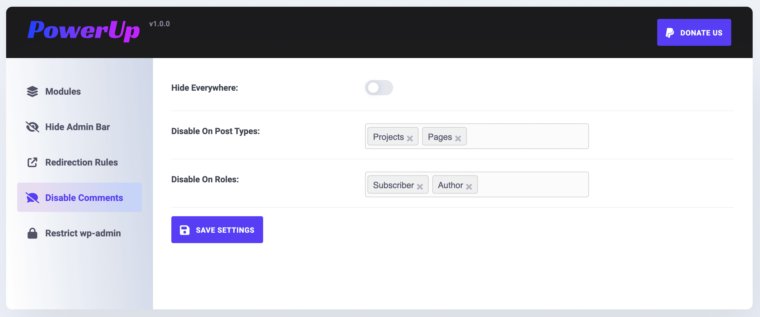 PowerUp is an excellent plugin to supercharge the WordPress website. It comes with tons of essential features & modules like login redirect, logout redirect, disable comments, hide admin bar, header footer scripts and remove footer credit. You can enable or disable any module with a single click.