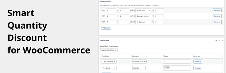 RIACO Smart Quantity Discount is a flexible WooCommerce plugin that allows you to create advanced pricing rules based on quantity, cart subtotal, or product types. Perfect for store owners who want to offer promotions like: