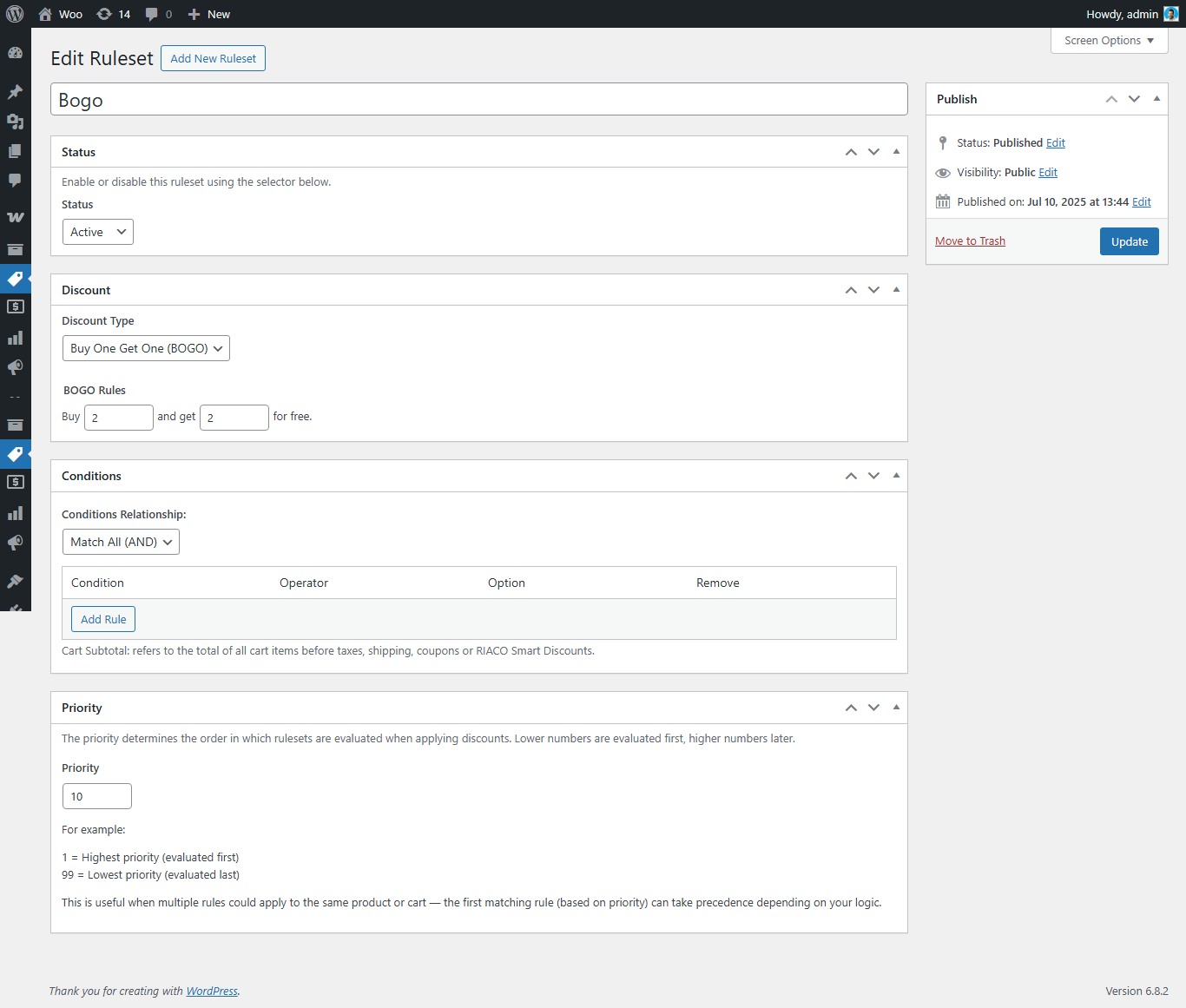 /wp-content/plugins/riaco-smart-quantity-discount/directory, or install via the WordPress plugins screen directly. - Activate the plugin through the ‘Plugins’ menu in WordPress.