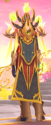 The Scroll of the Adherent that appeared in my decor catalog along with the other Arakkoan items went into the scribes’ workroom (it’s the largest scroll on the upper shelf of the desk with the Open Tome of the Dragon’s Dedication), along with some Mad Science Blueprints from the Mechagnome Endeavor going on in my Founder’s Point neighborhood.
