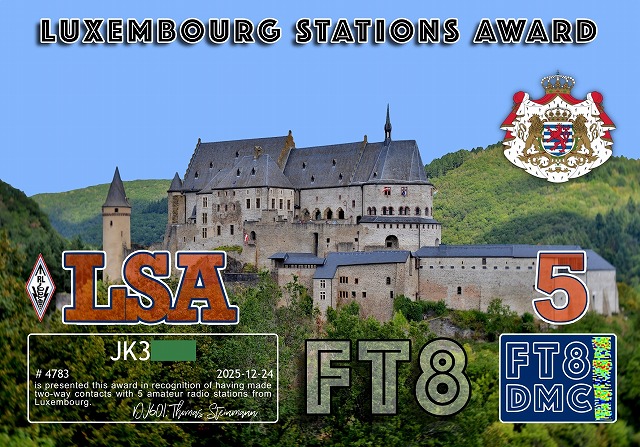 2025年8月31日に LX7I と21MHz・FT8で交信して取得。