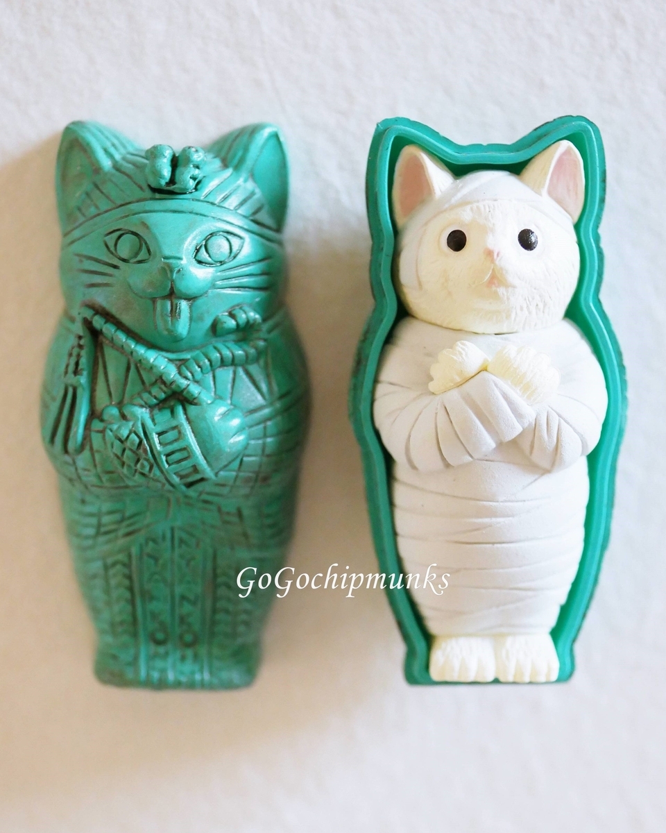 「なんかカワイイ」という理由で作られている「猫×コスチュームフィギュアシリーズ」のミイラキャット The mummy cat。新作は猫型の棺に入ったミイラの猫です。