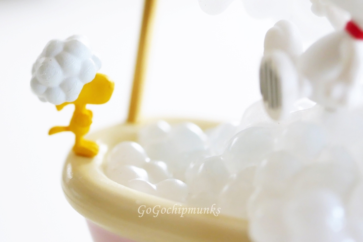バスタブにいっぱいの泡、リラックス顔のスヌーピーがとても愛らしく、見ているだけで癒される、お風呂時間が楽しくなるミニチュア。