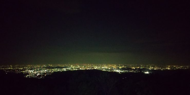 補給後は御岳山登山口付近のトイレに寄って、アタック開始!!淡々と登るしかないので、極力会話をして気を紛らわせたり、眠気が来ないようにしていきます。徐々に陽が落ちてきて少しずつ薄暗くなってきますが、キツイ上りを過ぎたあたりからペースアップできたので、ギリギリ日没寸前に御岳神社まで来れました!