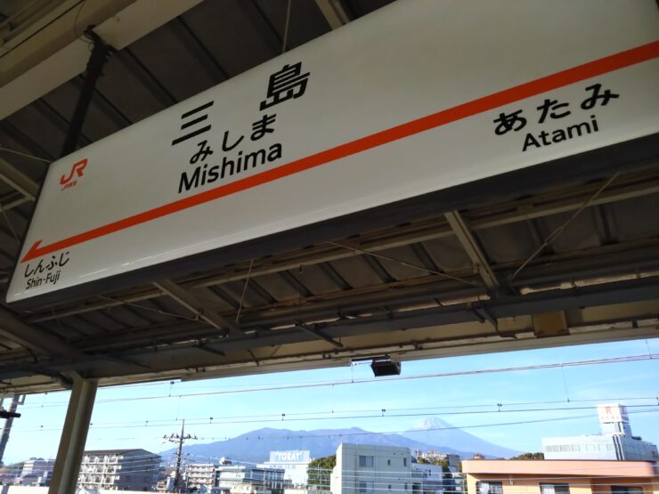 お昼過ぎに東京駅を出発!三島駅に到着したら、南口から改札を出て楽寿園に向かいます!