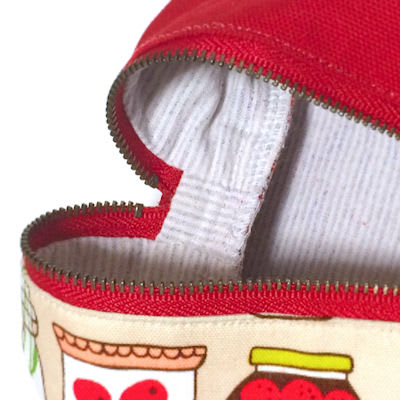 表生地の裏に接着芯を貼り、裏地も付けてるので、コシのあるポーチになります。