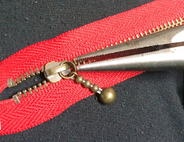 ↑普通ファスナーには金属の引き手が付いてますが、これをペンチでひっこ抜いちゃう。