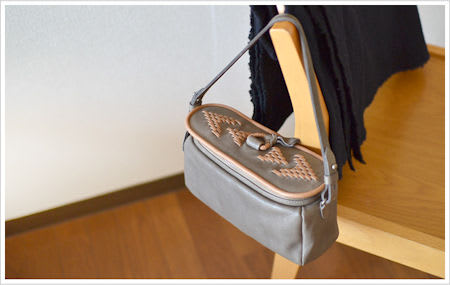 ↑テープを結んで完成!ファスナーの両サイドも補強のために本革で縫いつけてます。