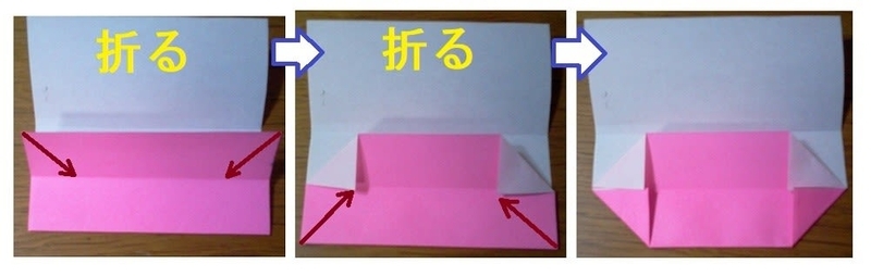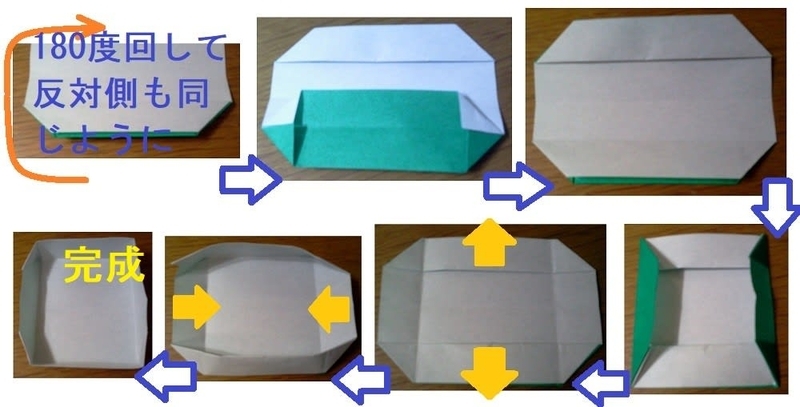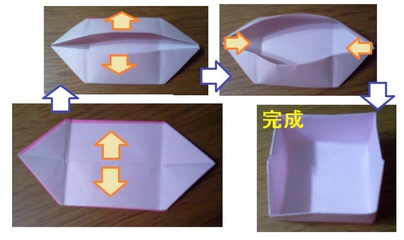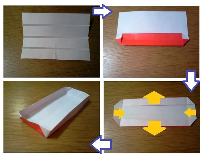 壁がしっかり立てられたら箱の完成です。曲がり角のところは折り目が山谷逆になっているので、しっかり正しく折り直してください。