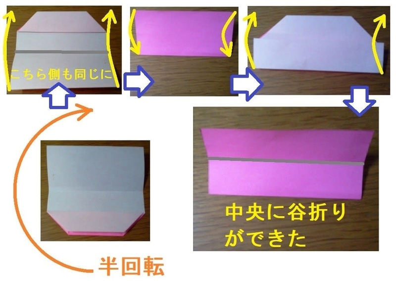 ここからは、用紙を横長に置いて作業を始めます。そこが違うだけで、後はすべてAと同じです。したがって、作り方を4コマの写真で示します。