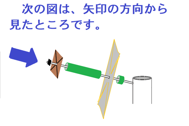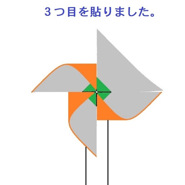 「貼ったところです。ちょっとだけ風ぐるまになりました。これを繰り返していきます。」