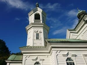 ↓ 国の重要文化財に指定されている「豊橋ハリストス正教会・聖使徒福音者馬太聖堂」(大正2年・1913・建造◇)も再訪。天気がいいと白く塗られた壁が映えて印象も随分違う。
