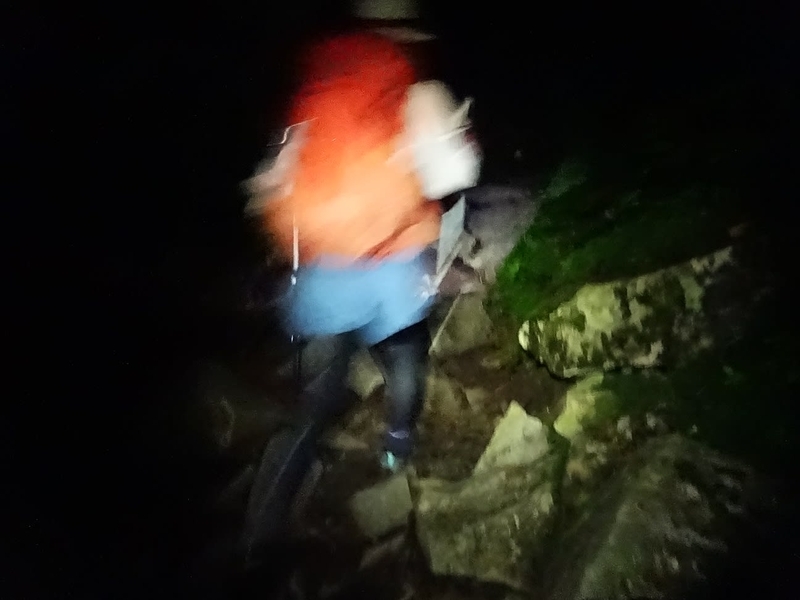ヘッドライトの明かりで黙々と進む