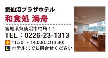- 港町レストラン鮮・リアスキッチン・気仙沼いちば寿司・気仙沼プラザホテル内 和食処海舟・サンマリン気仙沼ホテル観洋 和食処鮹 他