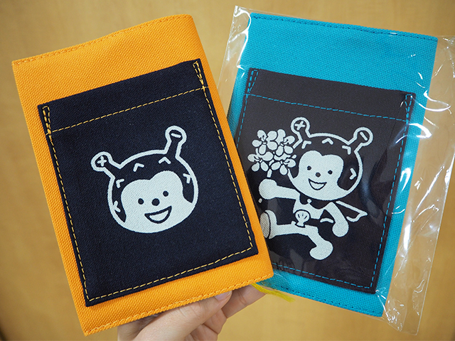 大切な本を守るブックカバー。表面にはスペースが付いていて、しおりやペンを収納できて便利です。