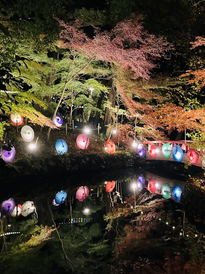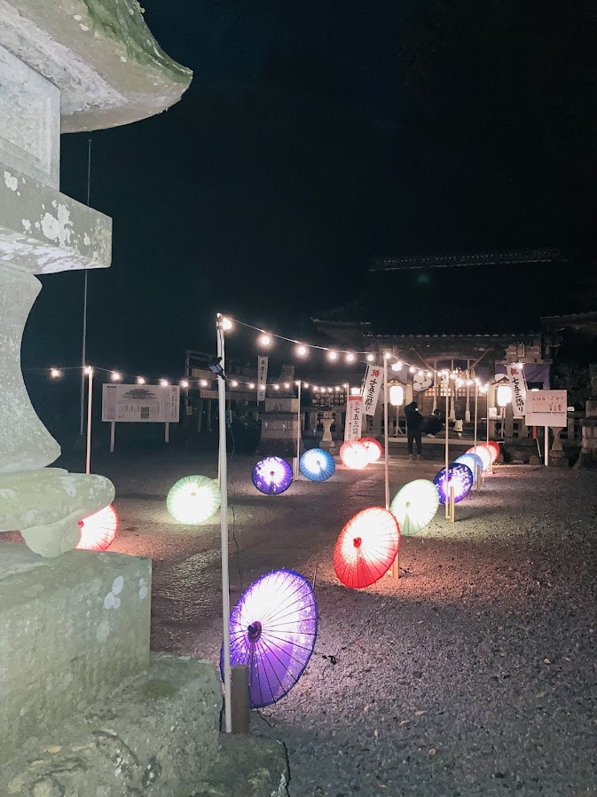 昼間の間々田八幡宮には和傘が配置されていてそれはそれできれいでした。猫が多くて猫を撮影する方がたくさんいました。神社より猫を撮影している人の方が多かったと思います。