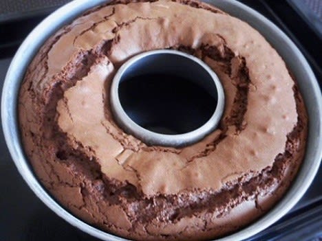 生地をエンゼル型に流し入れ、160度で27分焼きました。
