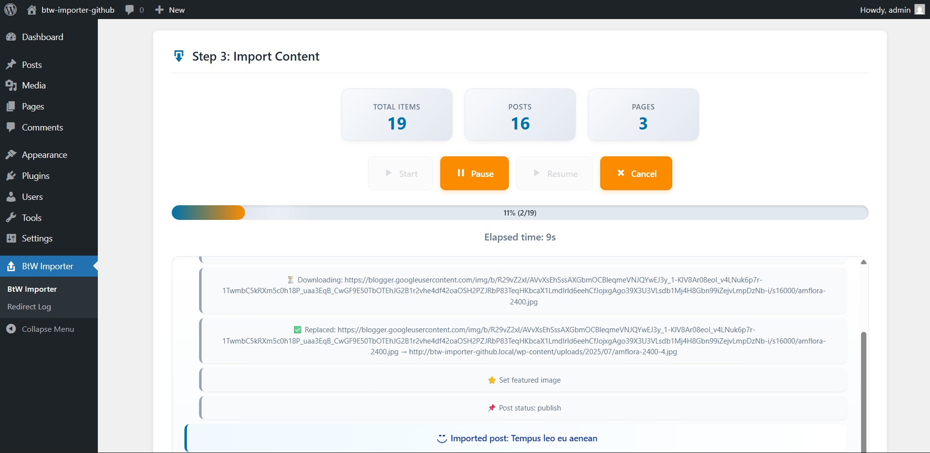 With just 3 steps, BtW Importer lets you upload your .atom file from Google Takeout and automatically imports your posts—images, links, formatting, and more. It also enhances your content by downloading embedded images, replacing Blogger URLs with WordPress-friendly links, and setting featured images based on the first image in each post. Plus, you’ll get real-time progress feedback so you can watch the migration unfold with confidence.