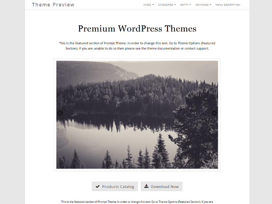 Prompt is a beautiful responsive theme that is built for those who need a landing or sales page website. It attracts the attention of visitors with its narrow width design and featured section where 2 call to action (CTA) buttons are displayed to grab focus of anyone. It is great for business/corporates needing landing page/sales page website. With a single menu, 3 widget areas and Theme Options, Prompt remains simple, elegant and extremely usable. It also allows to modify or use new icons via Font Awesome and also has a social section where you can show your social networking profiles. Prompt is Translation ready and comes with 100% GPL license and online documentation.