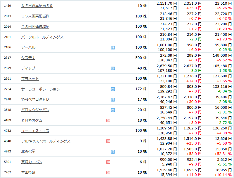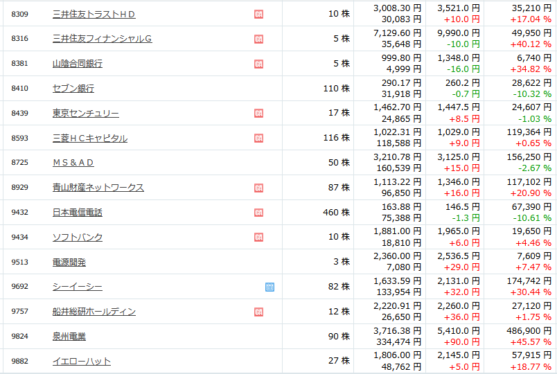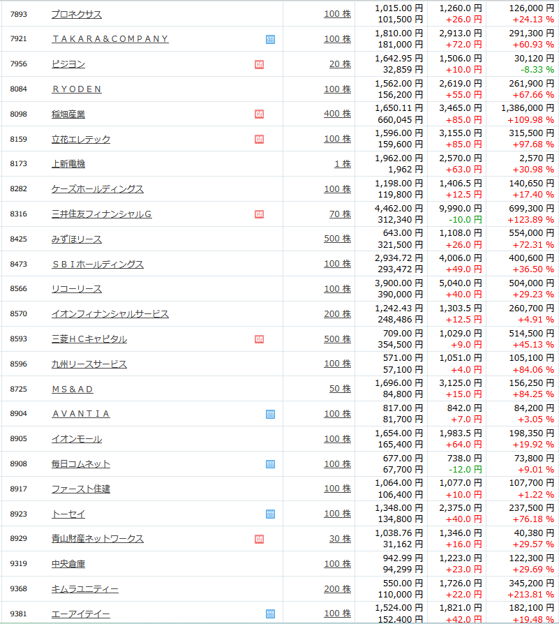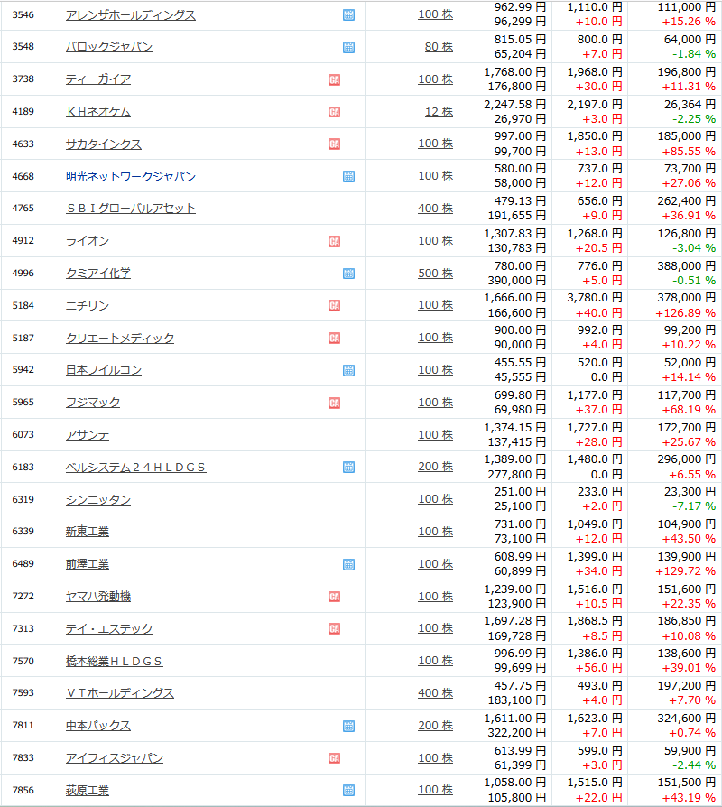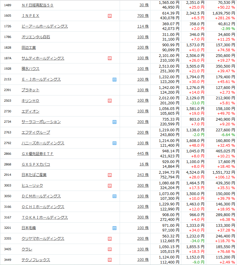 ここ最近は配当ラッシュのおかげで欲しい銘柄を買い増し。