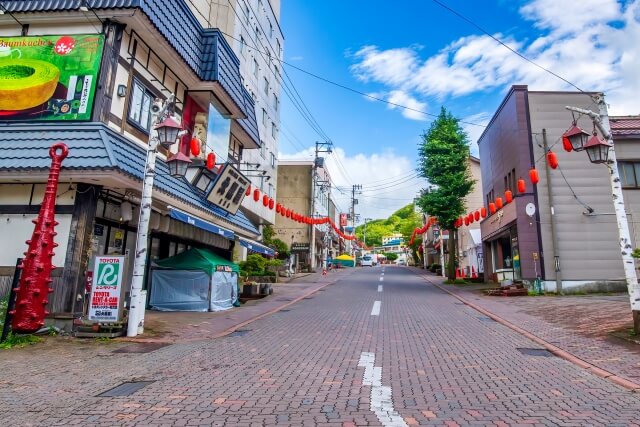 登別温泉には、極楽通りと呼ばれるにぎやかなメイン通りがあります。