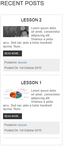 Example multiple categories: [recentposts-sc category=»lesson,lesson2,lesson3″] -