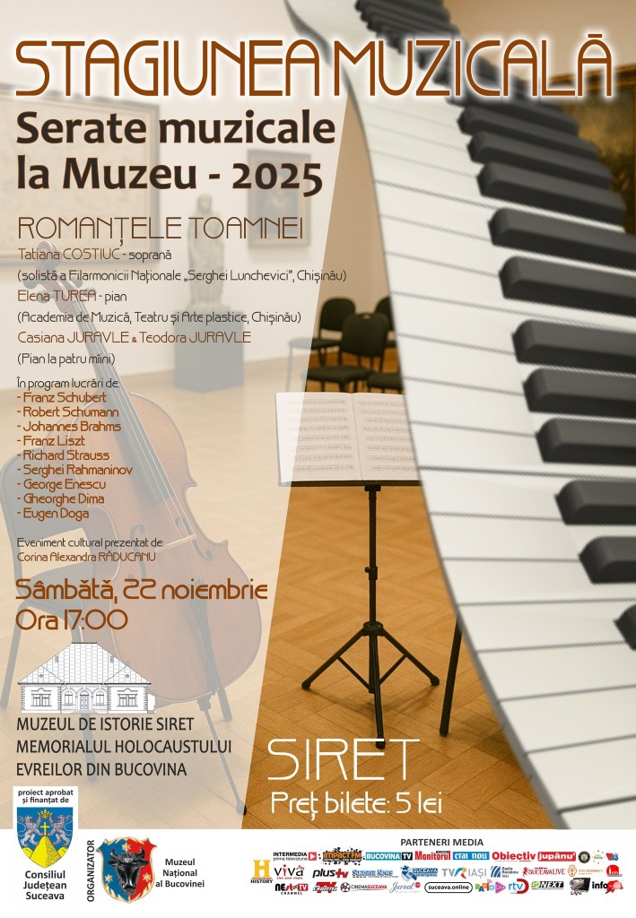 ISTORIE și MUZICĂ, seria culturală interdisciplinară centrată pe evocarea unor personalități și momente importante din istoria României, prin conferințe-concert ce îmbină istoria culturii cu muzica clasică, se deschide pe data de 1 octombrie 2025 la Rădăuți, de Ziua Internațională a Muzicii.