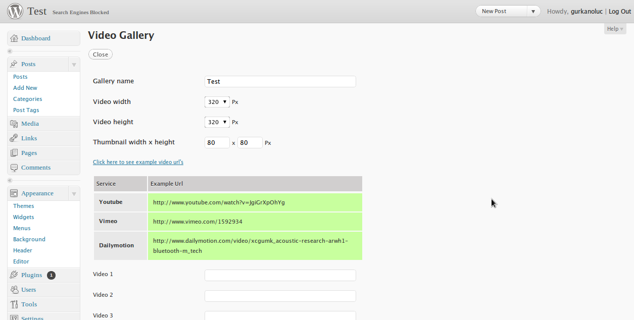 - Upload video-gallery directory to your /wp-content/plugins directory.
