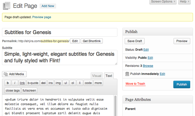 Activate the plugin Genesis Subtitles through the ‘Plugins’ menu in WordPress