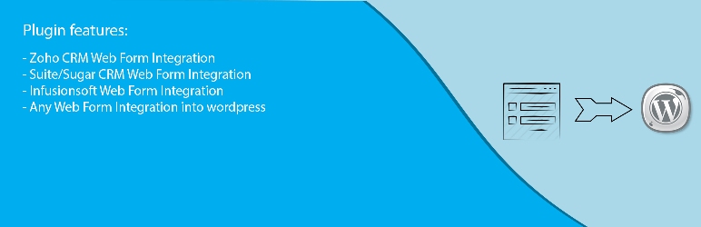 Any Web form integration into wordpress website. It can be Zoho webform, Infusionsoft webform, sugar crm, suite crm or any webform. Shortcode option to place form at any place in website.