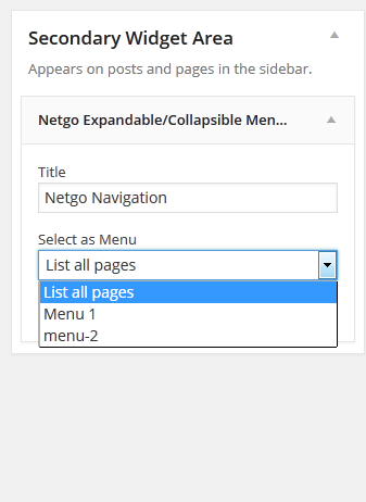 - Go to WP-admin -> Appearance -> Widgets and you will find the ‘Netgo Expandable/Collapsible Menu’ widget there.