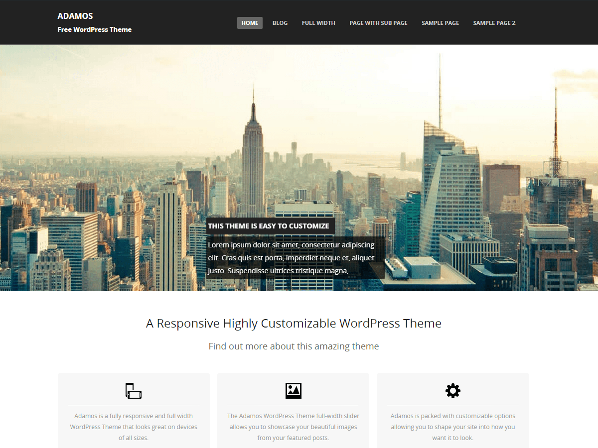 adamos is a full-width, fully responsive and highly customizable free Portfolio WordPress Theme. Add your own logo, header, featured areas and much more.