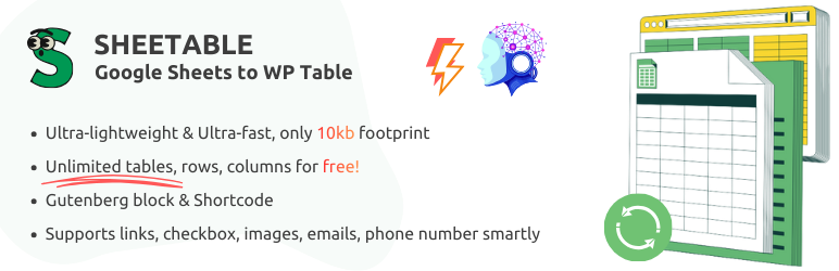 Sheetable – Google Sheets to WP Table lets you embed and sync Google Sheets data as responsive WordPress tables. Import your spreadsheet, customize the display, and embed it anywhere using shortcode or Gutenberg block. No API key required, no server load, no complex setup.