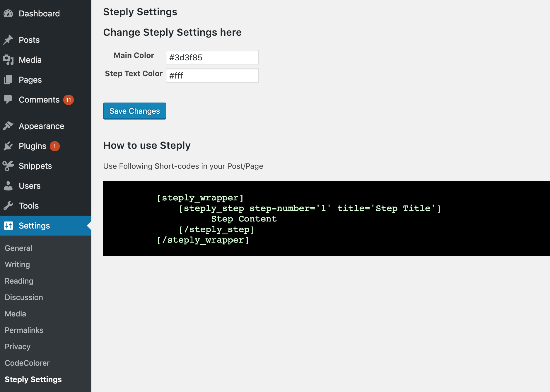 - Use the Settings->Setply Settings Option to change color of steps heading background