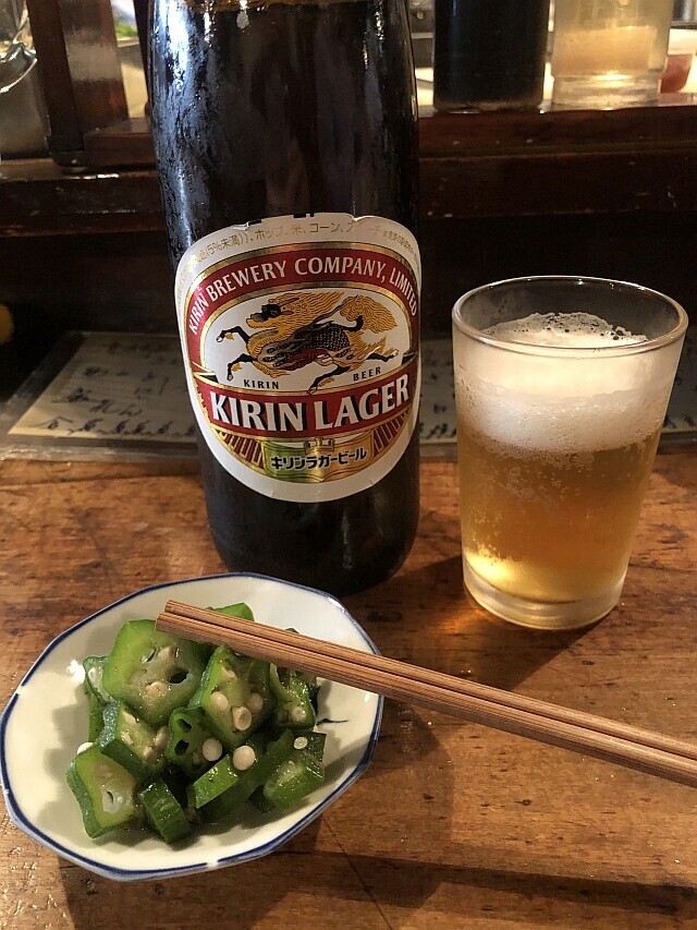順番に注文を取るので、まずは瓶ビールを。