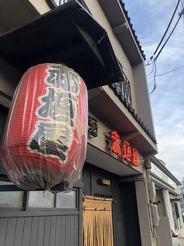 店の前の大きな赤い提灯が風情あり。