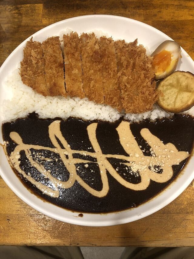 黒いルーの上には、ホワイトソースが絵文字のようにかかっている。