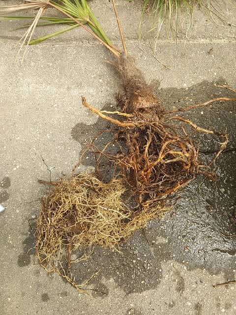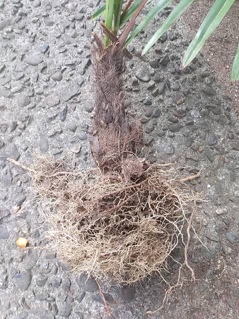 棕櫚を植えるときに穴を掘ったときには根は一本もありませんでしたので肥料を求めてきたのは間違いありません。栄養分があるところに根を伸ばして来るは植物の本性でしょうからやむを得ません。