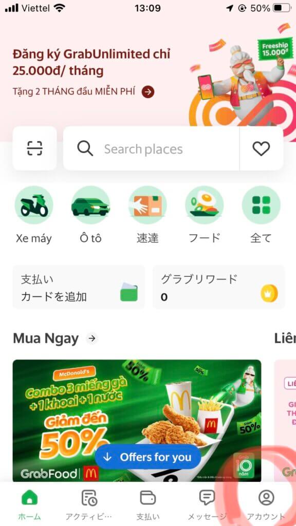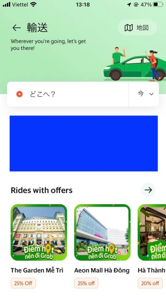 基本「GrabCar tiết kiệm」もしくは、「GrabCar」を選んでおけばOK