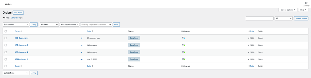 ✅ View follow-up email status directly in the WooCommerce orders table