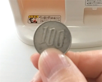 👇よーく混ぜてから100円玉をセットいたしまーす。