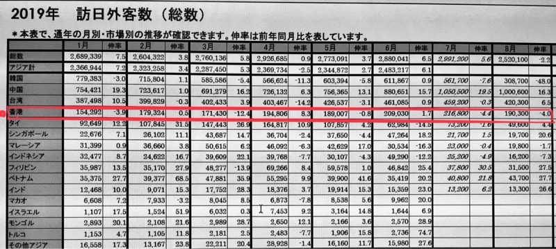 ✳️香港からの訪日外国人数はどうだろうか?